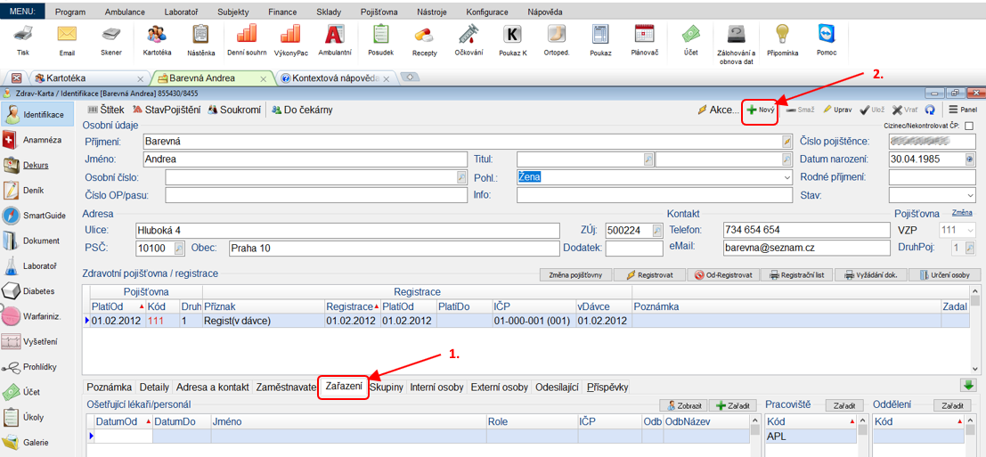 - Slouží k evidenci interních i externích ošetřujících lékařů.