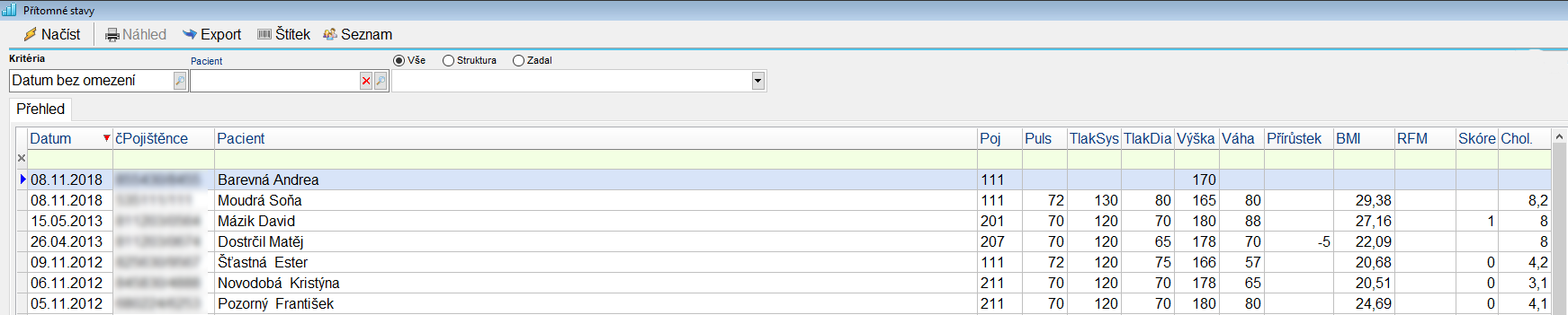 Seznam - přidá pacienty do seznamu