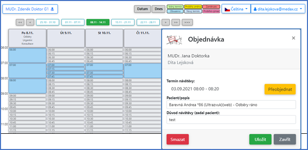V případě, že budete objednávku zadanou prostřednictvím webu mazat nebo přeobjednávat, bude automaticky o této změně pacient informován e-mailem.