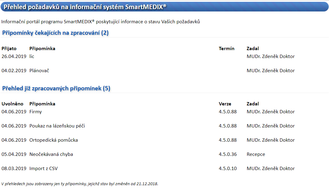 Pro úspěšné odeslání je nutné řádně vyplnit kontaktní údaje v sekci Odesílatel. Následně vybereme, o jaký typ zprávy se jedná (připomínka, chyba, závažná chyba, žádost o licenci). Poté důkladně popíšeme připomínku, či závadu. Doporučuje se jako přílohu přiložit soubor či scan obrazovky. Kliknutím na tlačítko  Odeslat odešleme zprávu vývojovému týmu aplikace SmartMEDIX.