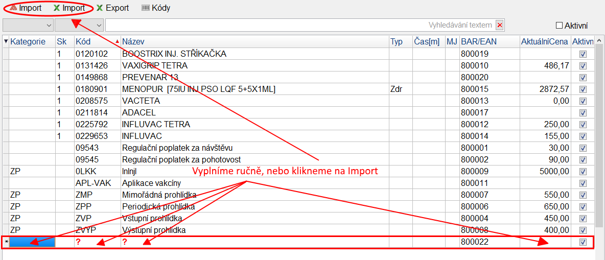 - Aktuální cena -lze zadat ručně, v případě importu ze zdravotnických číselníků se doplní automaticky (pokud je zatržena tato možnost v nabídce tlačítka